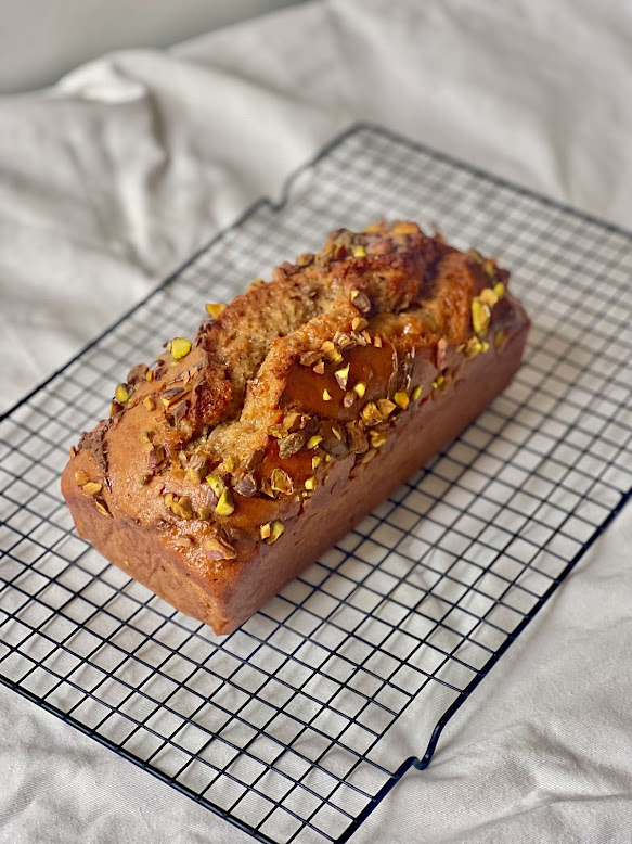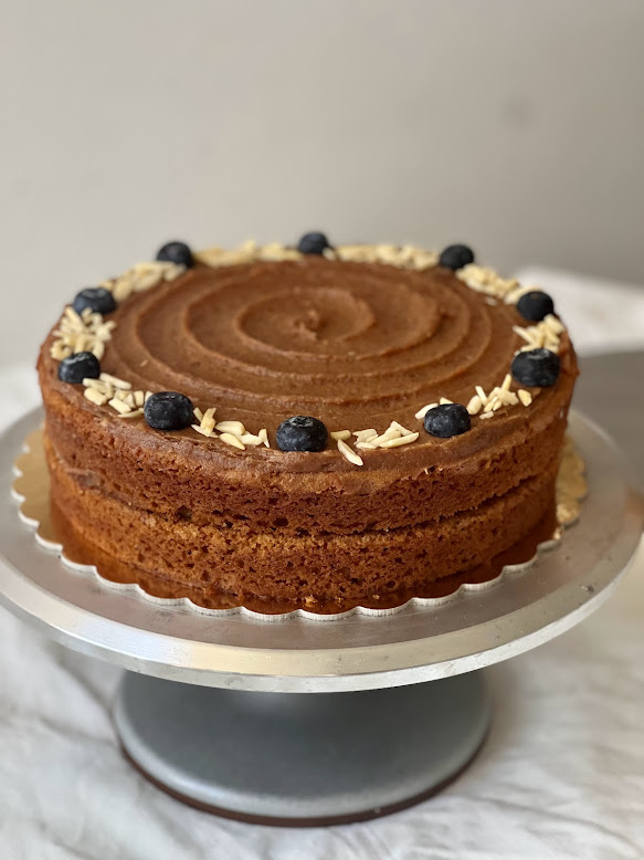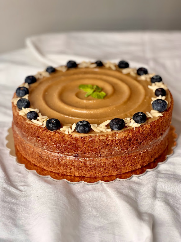 Coconut sugar cake with date and peanut caramel (24cm diameter).