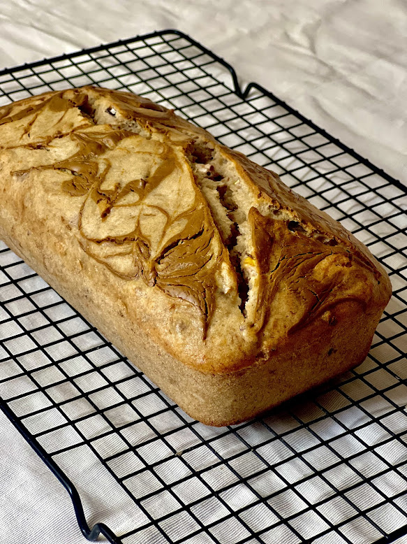 Banana cake with speculoos cream filling (24cm diameter).