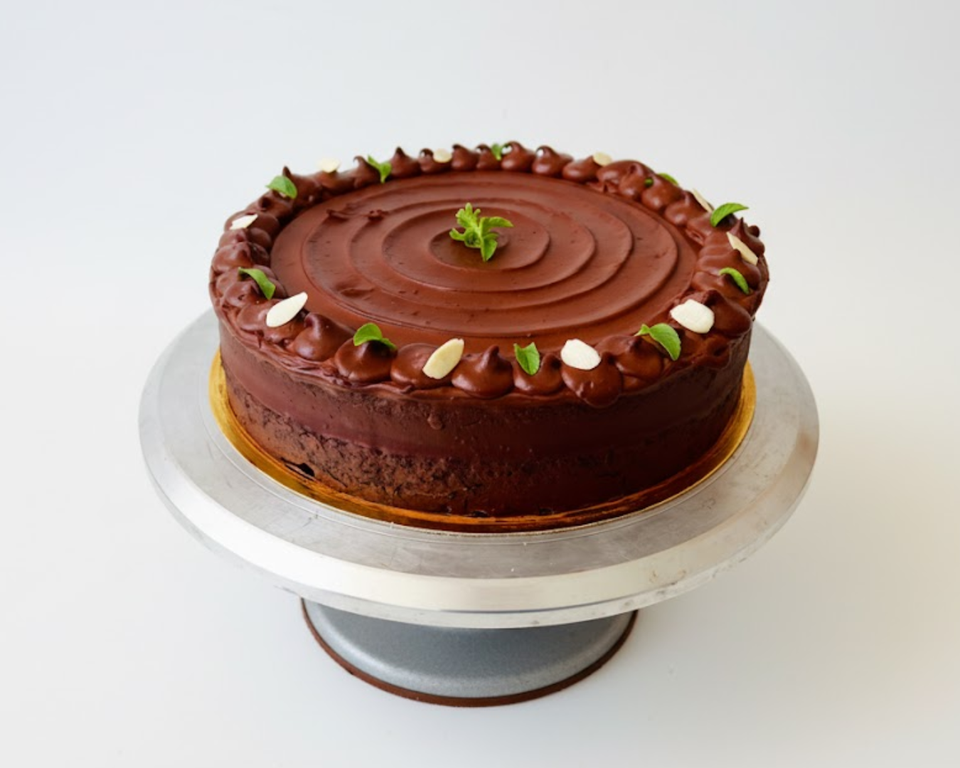 Chocolate cake with chocolate ganache filling (24cm diameter).
