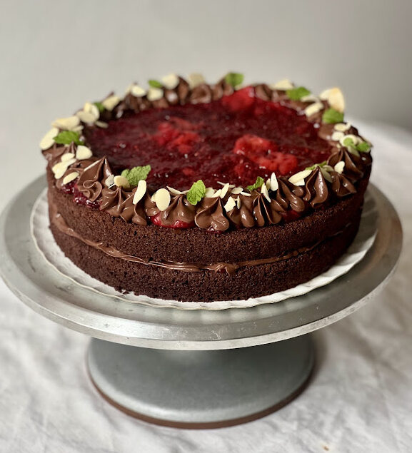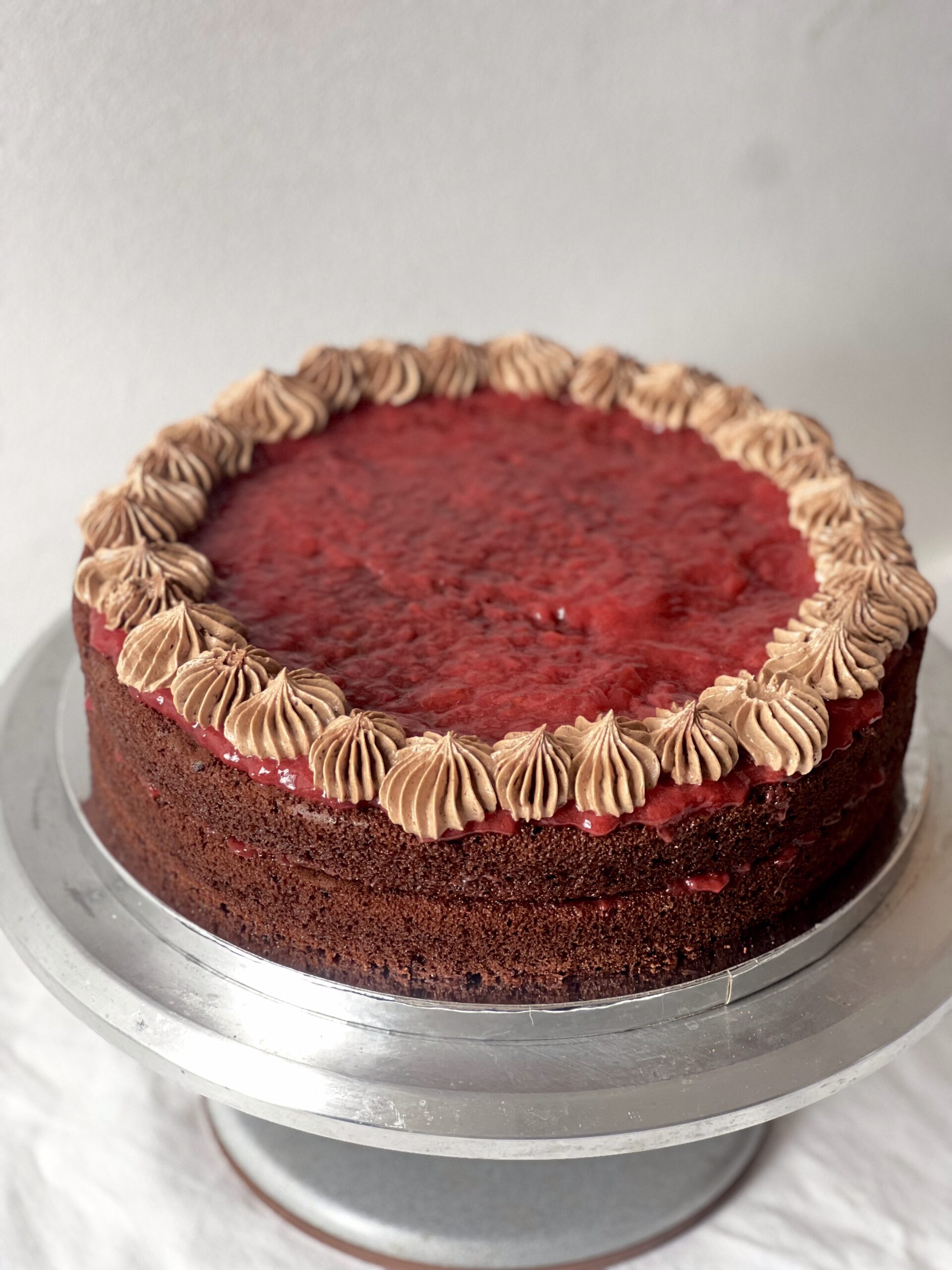 Chocolate cake with berry jam filling (24cm diameter).
