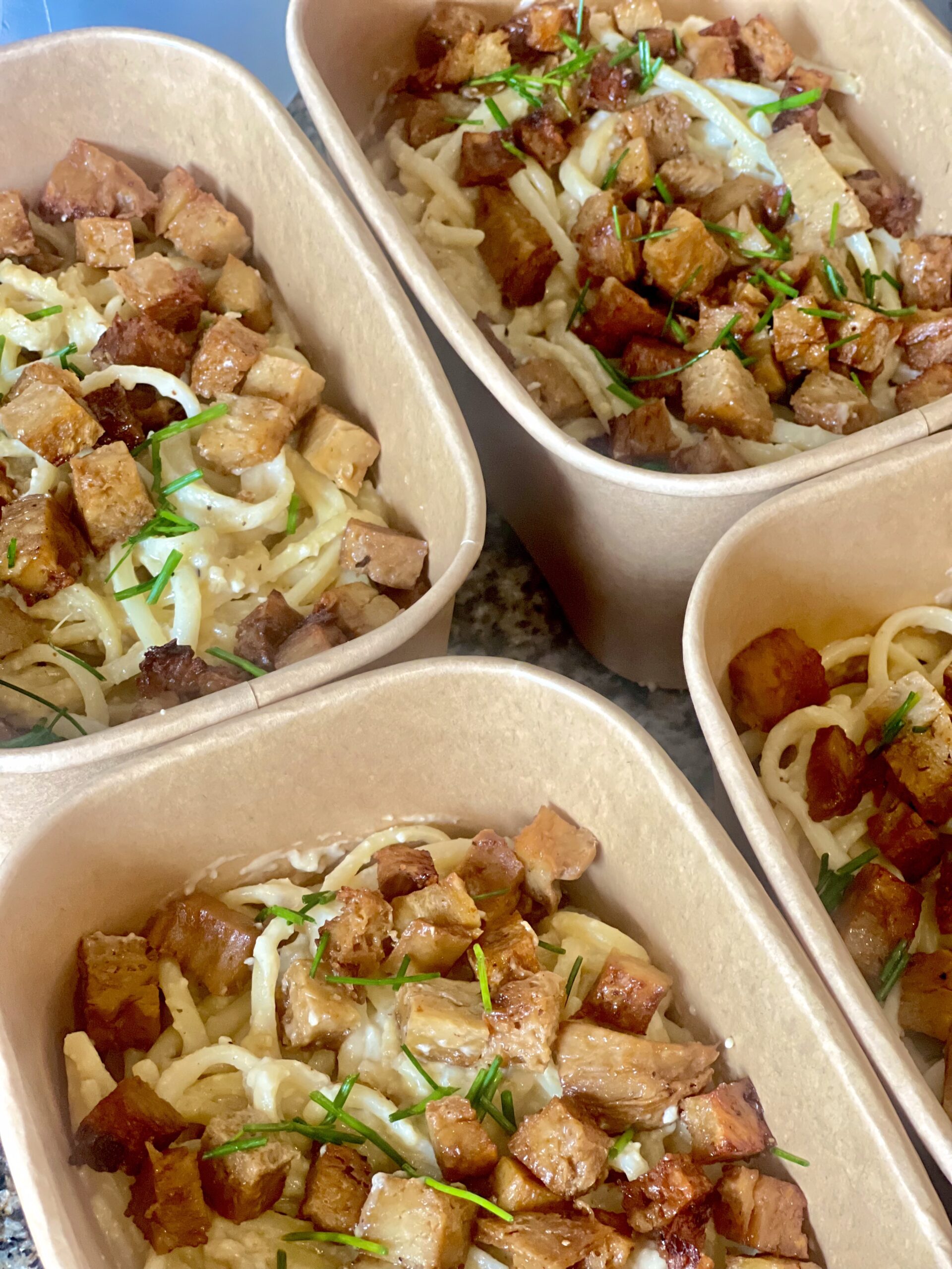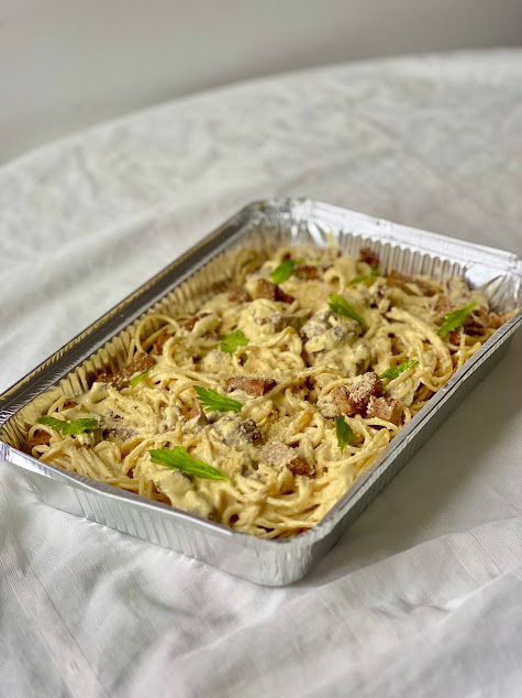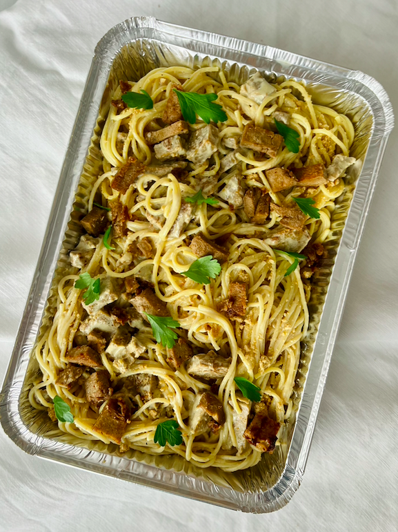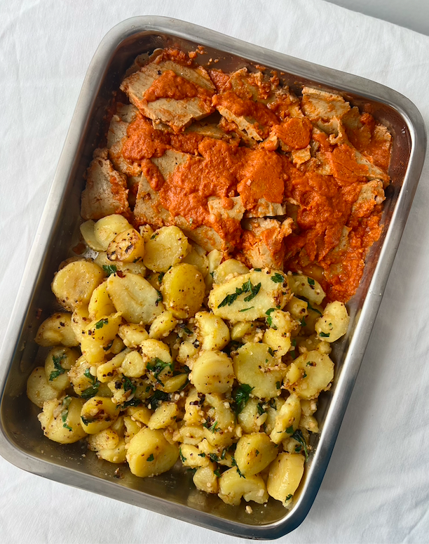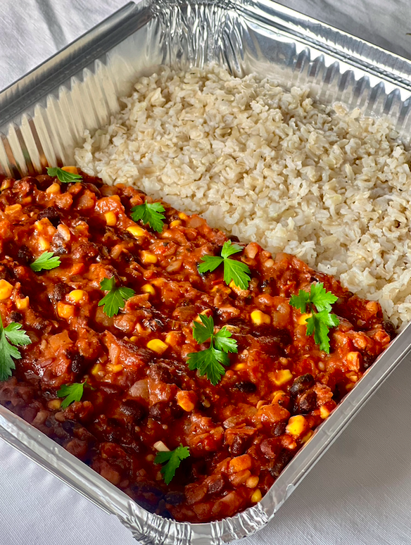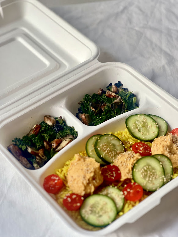 Meal tray that serves up to 4. Can be heated or stored for meal prepping. Menu varies weekly.