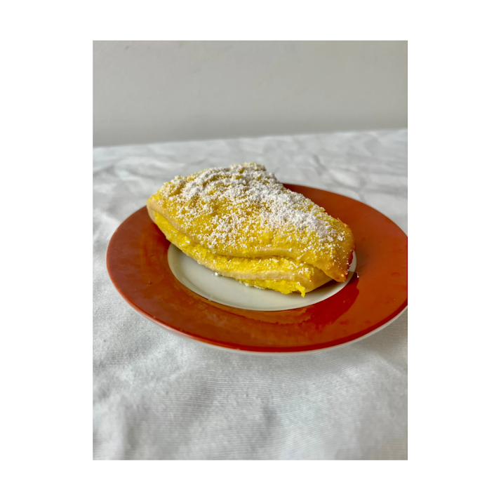Traditional baked “brioche”-style dough, filled and topped with coconut pastry cream and powdered sugar (4 units).