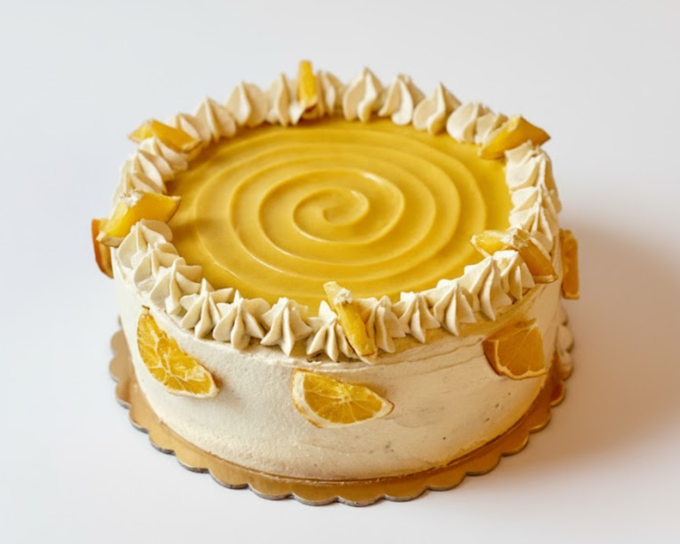 Lemon or orange cake with lemon or orange curd filling, and homemade buttercream frosting (24cm diameter).