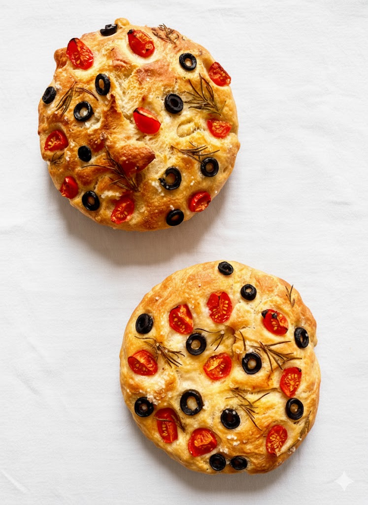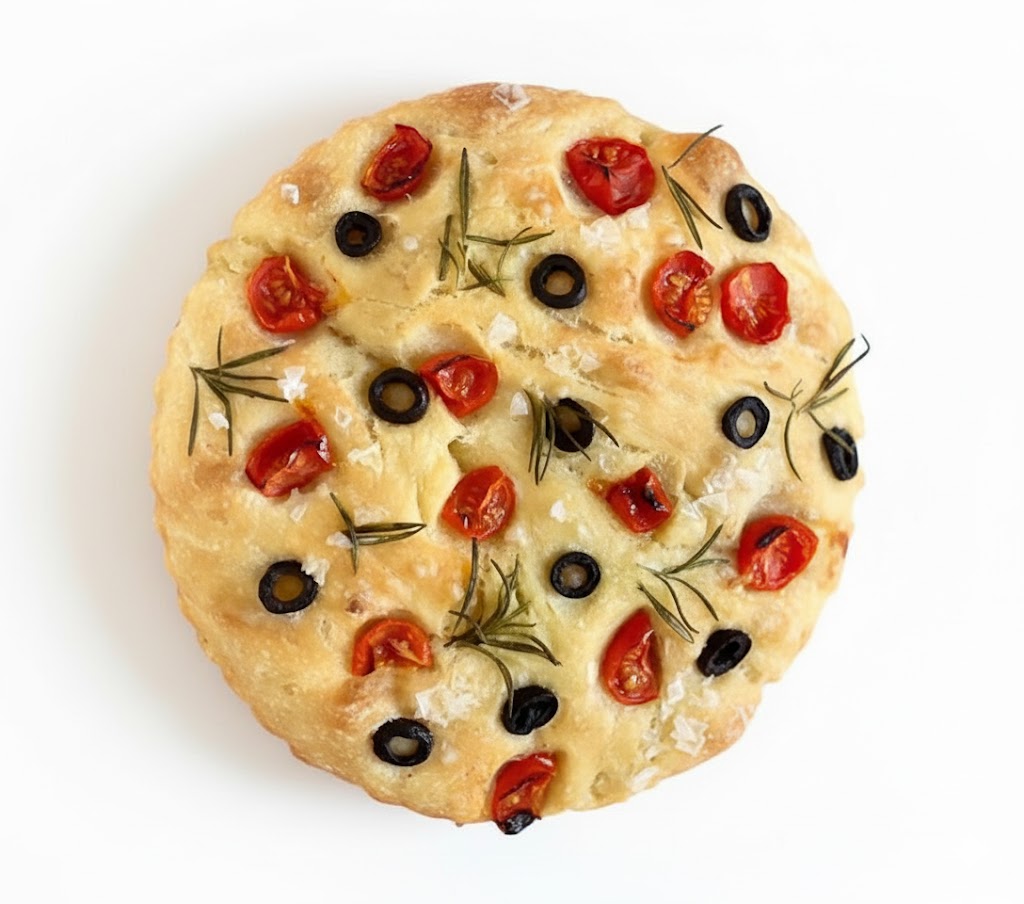 – Vegan cheese, tomato sauce, olives, and oregano